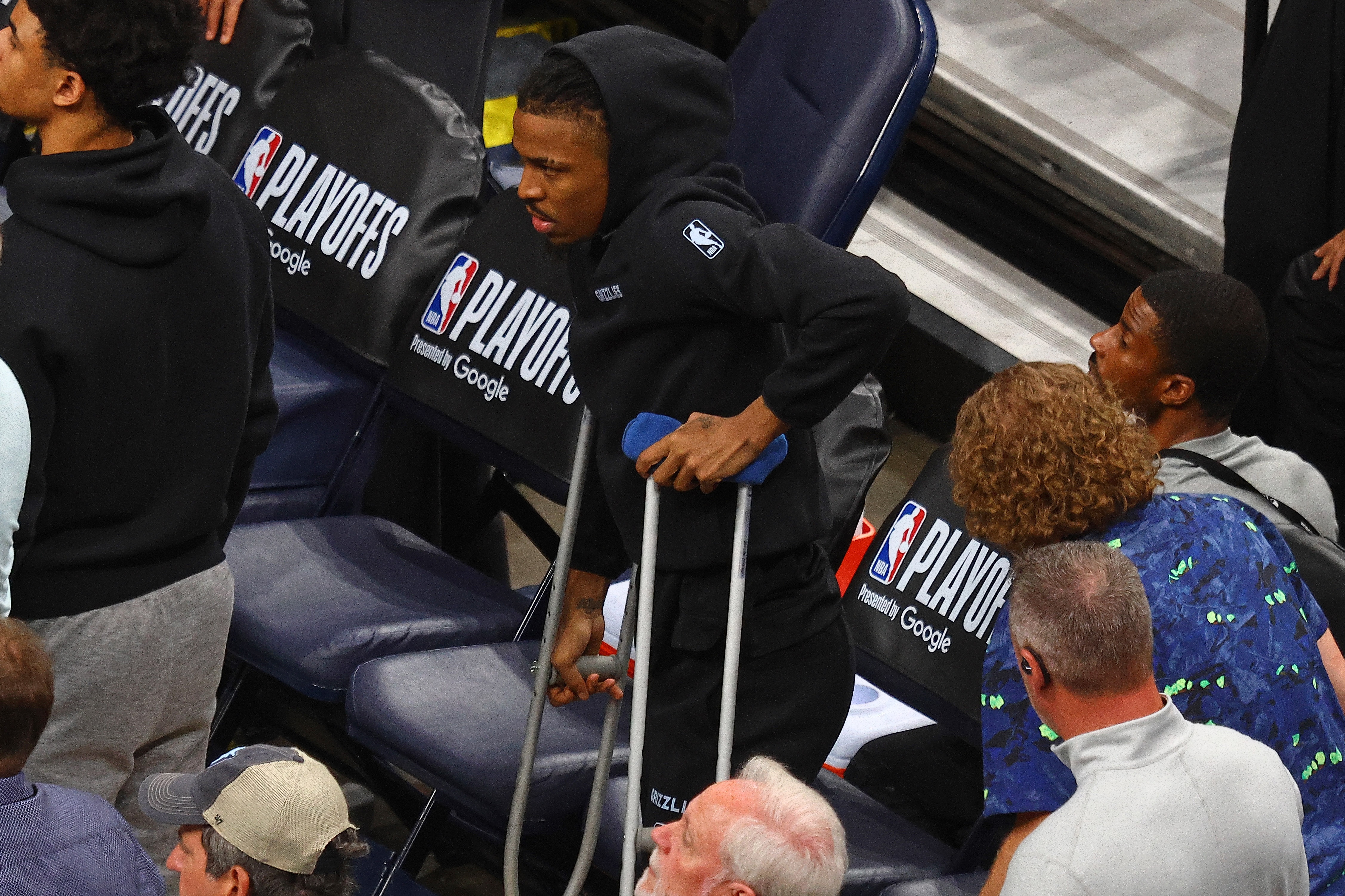 Shams Charania称,莫兰特上周(4月16日对阵勇士)脚踝严重扭伤,但是为了球队的季后赛席位,他选择带伤作战最终率队击败独行侠。而昨日莫兰特再次受伤,他在空中被多特撞到,遭遇髋部挫伤。
