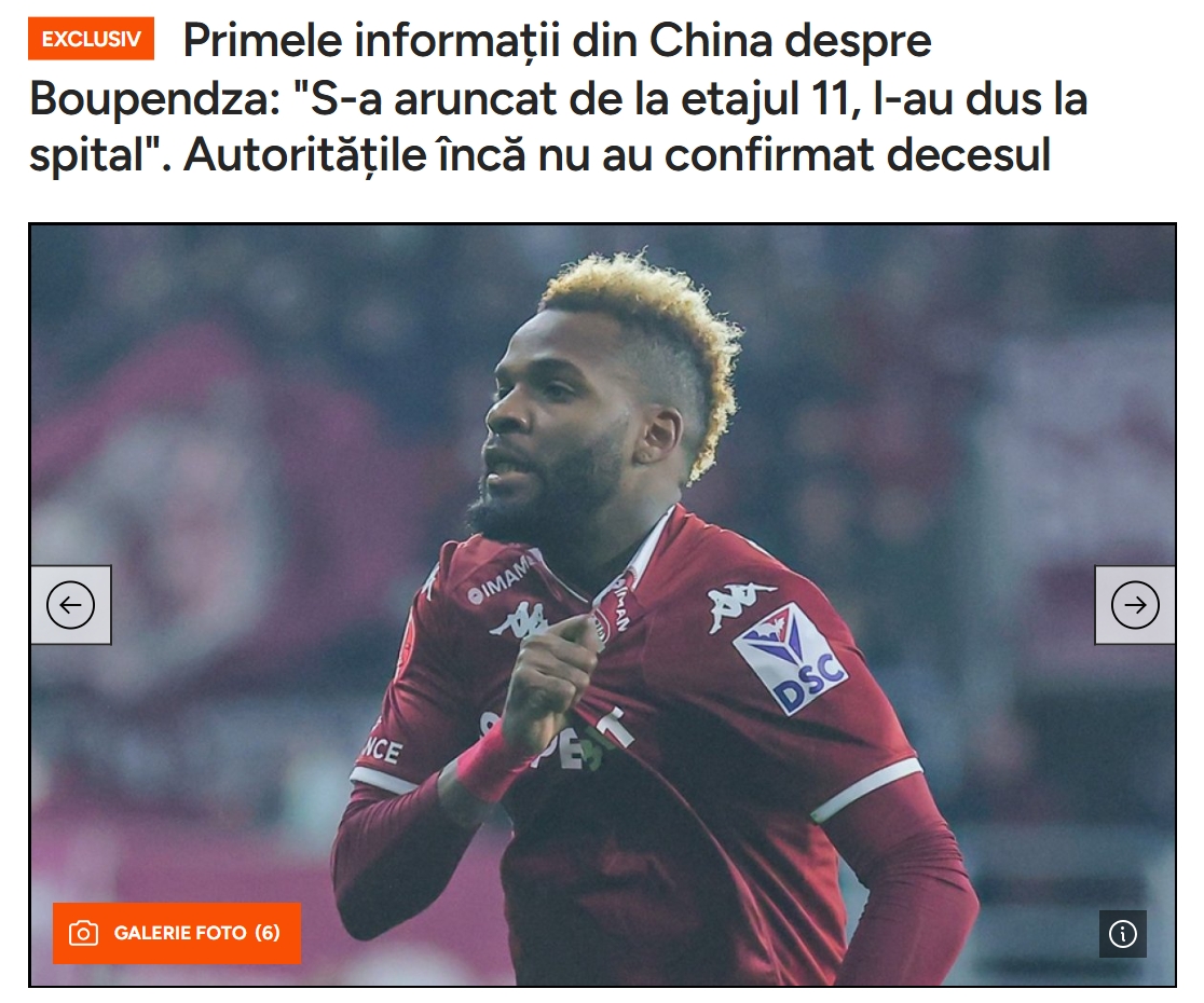 04月16日宣 罗马尼亚媒体IAMsoort于北京时间今天下午16:26发布独家报道称,效力于中超浙江队的外援布彭扎从11层高楼坠落后,正在医院接受治疗。