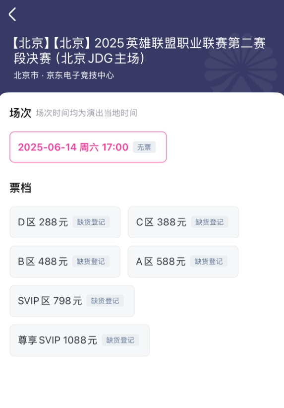 6月9日宣 根据售票网站信息,目前LPL决赛6月14日的门票,所有档位的票均已售罄!