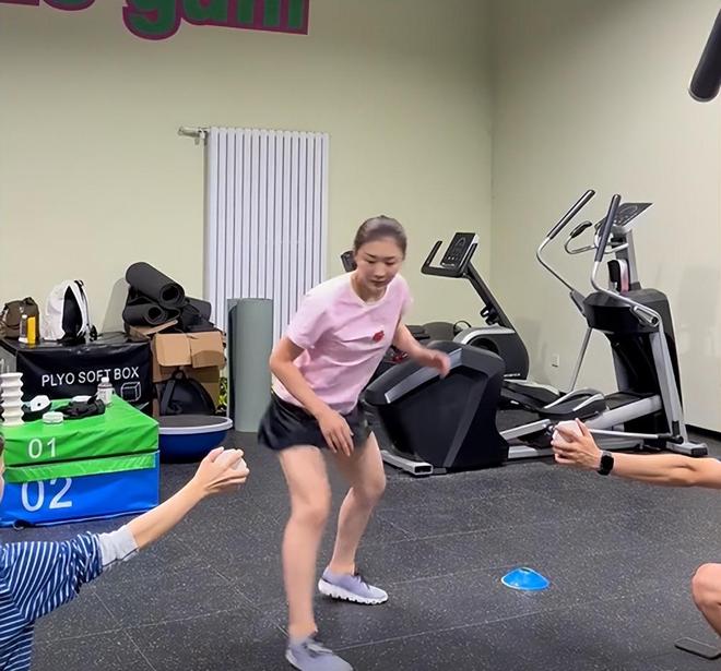 在陈梦的最新训练视频中,她进行了系统训练,包括各种身体训练。身体训练由很多部分组成——脚步移动训练、手部力量训练、身体柔韧性训练,反应灵敏度训练。当然也有常规的跑步体能训练。