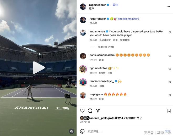费德勒看到这条评论,一定会笑出声,因为评论区的网友也都被逗乐了。毕竟,穆雷当年与费德勒交手时,要读懂对方的发球绝非易事——费德勒的发球是他最具威胁的武器之一。他那“难以察觉”的抛球伪装以及由此带来的高效发球,早就连纳达尔都不得不承认很厉害。
