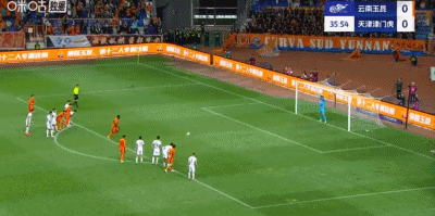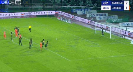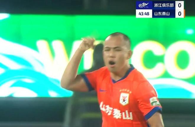 第45分钟,黄政宇禁区外轰出一记世界波,打在程进身上折射入网,泰山客场1-0!