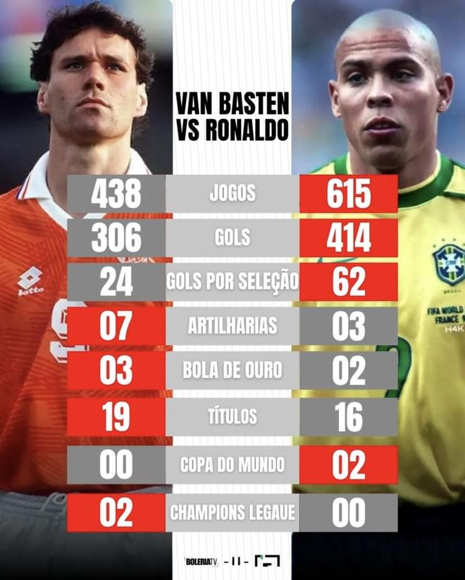 罗纳尔多VS范巴斯滕全面对比!罗纳尔多到底输在了哪里