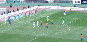 第35分钟,李新翔获得单刀,趟过王大雷后被高准翼及时解围破坏。