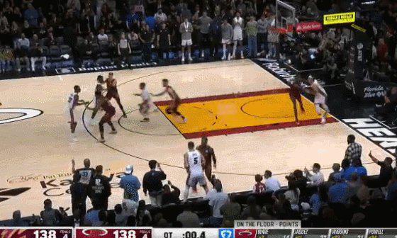 不过,热火在最后一个回合跑出了完美的战术。维金斯与小米切尔在罚球线位置设立了电梯门掩护,鲍威尔随后鱼贯而出冲向中圈。就在骑士众人的注意力被吸引之际,维金斯突然启动,借助小米切尔的掩护冲向篮筐。边线发球的约维奇心领神会,甩出的传球越过米切尔的干扰,精准找到已经完成起跳的维金斯,嘴哥在没有干扰的情况下完成绝杀一气呵成。