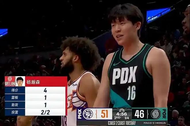 北京时间11月19日,开拓者和太阳的比赛刚结束,虽然开拓者输球了,但是咱们中国中锋杨瀚森今天得到了不错的机会,而且发挥很好,可谓是打出了NBA生涯最强一战,可喜可贺。今天的比赛,杨瀚森获得了13分08秒的出场时间,出场时间创常规赛生涯新高。全场比赛,杨瀚森7投4中,三分球2投0中,罚球1罚1中,拿下9分5篮板3助攻1盖帽,表现非常不错。