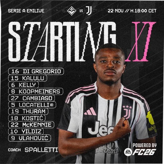 北京时间11月23日1:00,意甲第12轮,尤文客战佛罗伦萨。赛前首发公布。