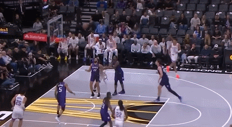 这俩单挑回合,不就是老八?他学会了一些卡鲁索爱玩的防守技巧,也能在和SGA一起上场的时候像杰伦-威廉姆斯一样担任二号持球手,甚至在一些比分胶着的回合里,SGA都会放心地把球交给米切尔来完成进攻。