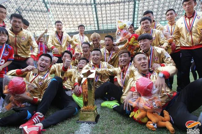 2014年10月25日,在2.15万重庆球迷的见证下,重庆力帆在1比1战平沈阳中泽后,以17胜10平2负积61分的骄人成绩冲超成功,赛后还举行了中甲冠军颁奖仪式,这也是重庆足球的高光时刻。
