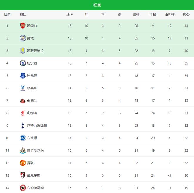 - 英超 | 随着维拉21绝杀阿森纳+利物浦33!英超最新积分榜:曼城连胜