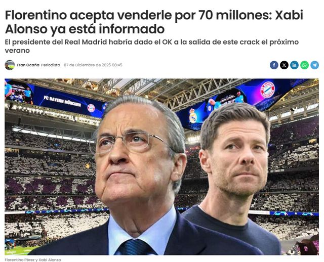 “defensa central”指出,皇马管理层已经同意7000万欧元出售罗德里戈,俱乐部主席弗洛伦蒂诺已经将决定告知阿隆索。尽管,阿隆索依旧对罗德里戈抱有信心。未来半年将是罗德里戈证明自己的机会:如果表现好,赢得阿隆索的信任,他还能留下来;若是延续低迷,离队是必然。