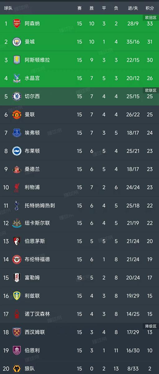 - 英超 | 英超第15轮结束了所有比赛,最新积分榜如下!