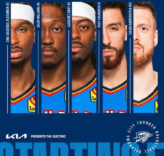 雷霆五虎霍姆格伦、多尔特、哈尔滕施泰因、杰伦、亚历山大本赛季首次合体首发出战。