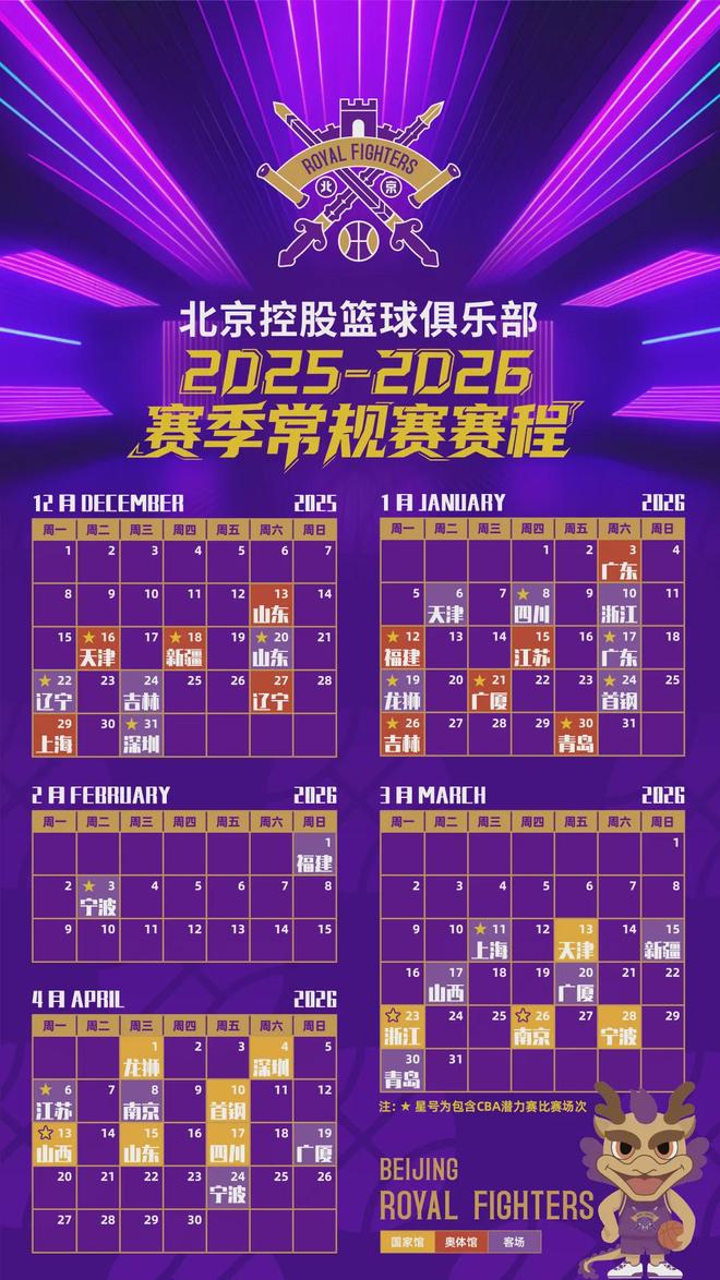 北控男篮新赛季赛程(星号场次为潜力赛场次)