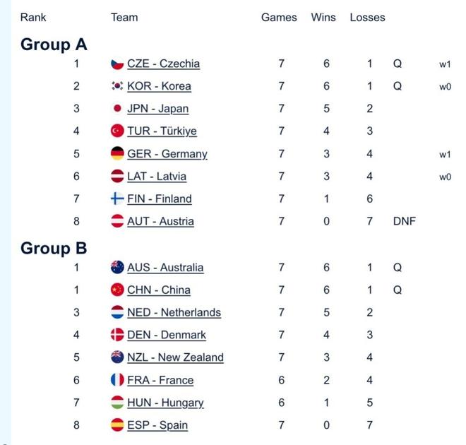 此前,中国混双组合在小组循环赛取得六连胜,暂列小组第一,但在最后第七场循环赛里,5比6不敌世界第一澳大利亚。好在同时开场的新西兰对荷兰的比赛,新西兰8比5战胜荷兰,使得中国队依靠少一个输局的优势,挤掉了荷兰队,最终排名本次冰壶落选赛B组第二名。