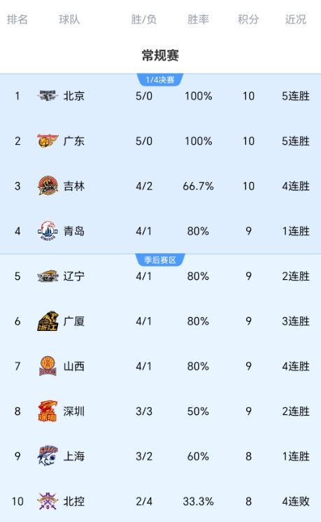 随着新疆惨败青岛,深圳送四川6连败,CBA积分榜:2大黑马升前四