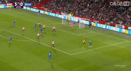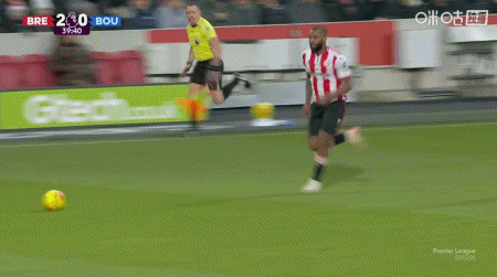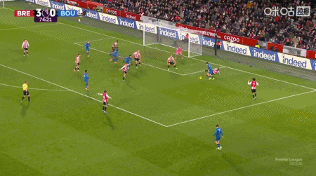 第90+6分钟,沙德头球破门完成帽子戏法,布伦特福德4-1伯恩茅斯