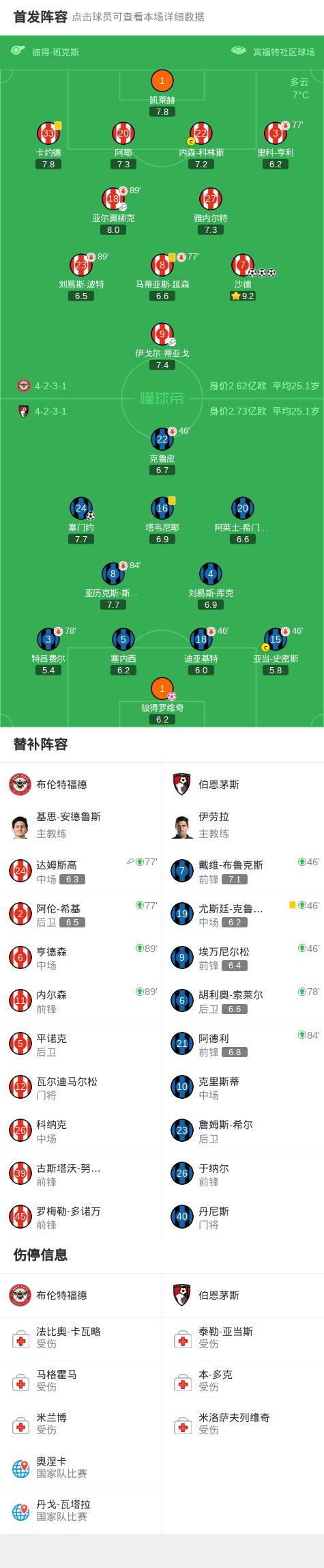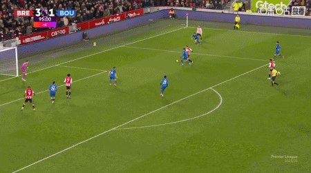 第7分钟,蒂亚戈直塞,沙德扛开防守低射破门,布伦特福德1-0伯恩茅斯