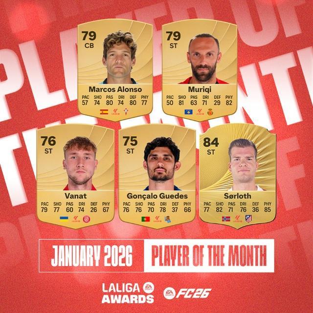 - 西甲 | 西甲1月最佳球员候选:穆里奇领衔,瑟洛特、瓦纳特入选